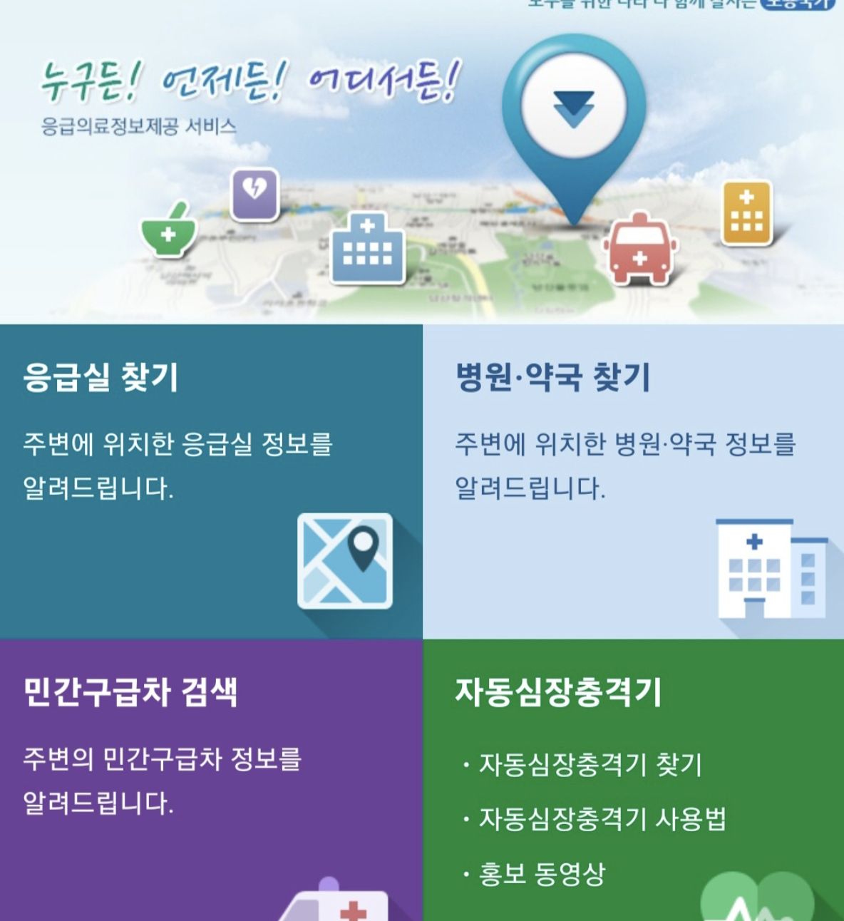 · 119: 위치 말하면 가장 가까운 응급실 즉시 안내